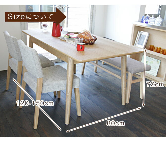※ 商品サイズ:幅120-150×奥行80×高さ72cm材質:天然木(アッシュ)、天然木化粧繊維板(アッシュ)、ウレタン塗装重量:約30kg 生産国:中国製北欧調のダイニングテーブル 天然木アッシュ材を使用したダイニングテーブル。